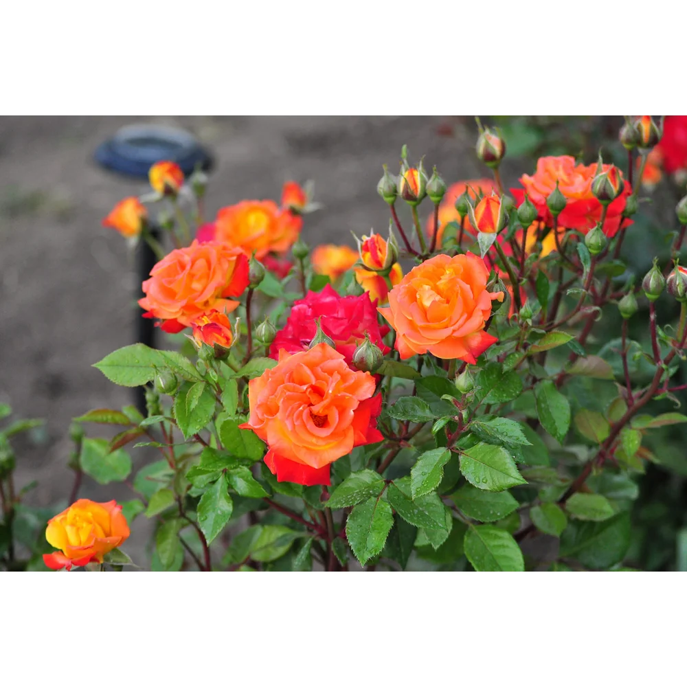 Trandafirul Teahibrid “Rumba” de 20-30cm. Florire sale sunt, in prima faza galbene, insa dupa cateva zile marginile capata o nuanta de portocaliu, apoi purpuriu, care se extinde pe partea superioasa a petalei, ramanand galben doar centrul si dosul florii. Se pretează la majoritatea tipurilor de sol și sunt perfecți pentru orice grădină. Perioada de inflorire este din mai pana in octombrie, in tot acest timp emanand un parfum deosebit. La maturitate ajunge la 100-120cm inaltime si 40 latime.